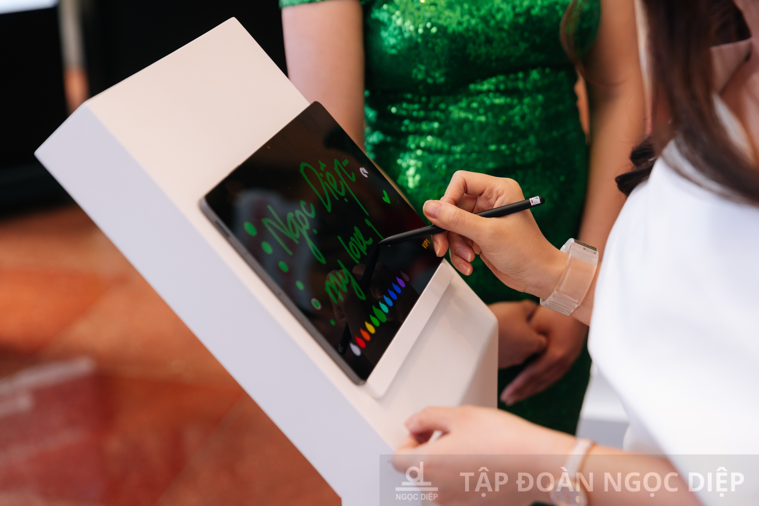 Khách mời viết lời chúc cho Tập đoàn Ngọc Diệp khi tham sự kiện.