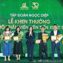 An emotional highlight at the 2025 Year End Review & Appreciation ceremony honoring employees who have contributed and accompanied Ngoc Diep Group for 30 years